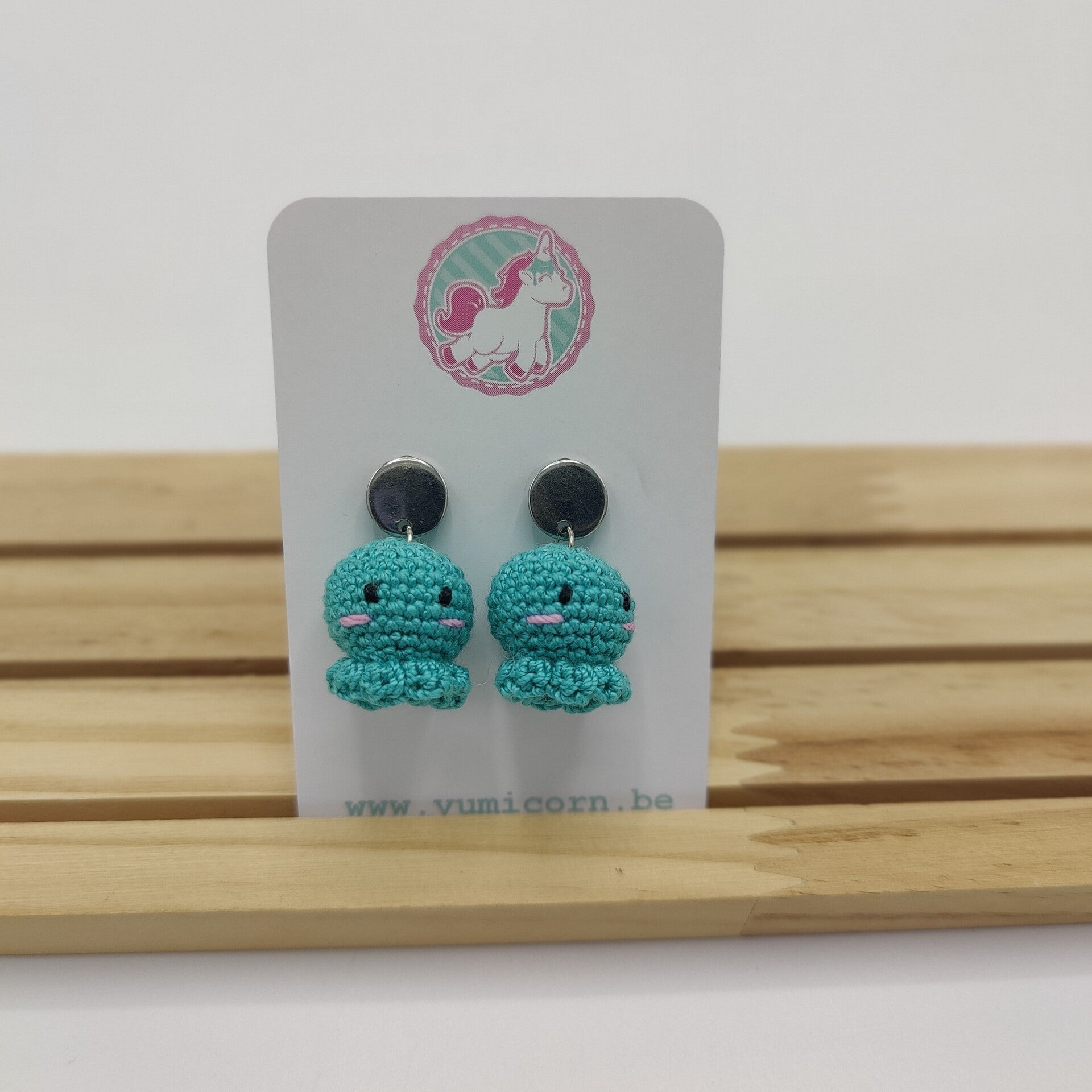Magnifiques boucles d'oreilles en forme de poulpes. Ils ont été soigneusement crocheté à la main avec du fil en coton.