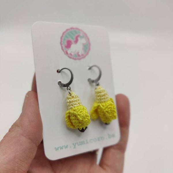 Magnifiques boucles d'oreilles en forme de cerises. Elles ont été soigneusement crocheté à la main avec du fil en coton.