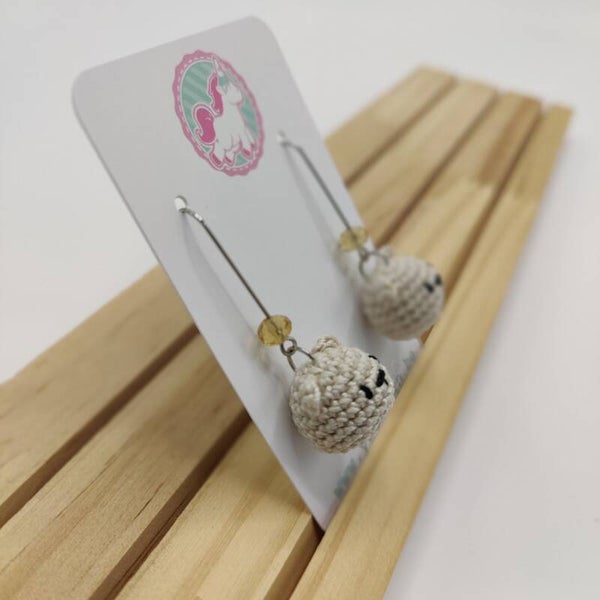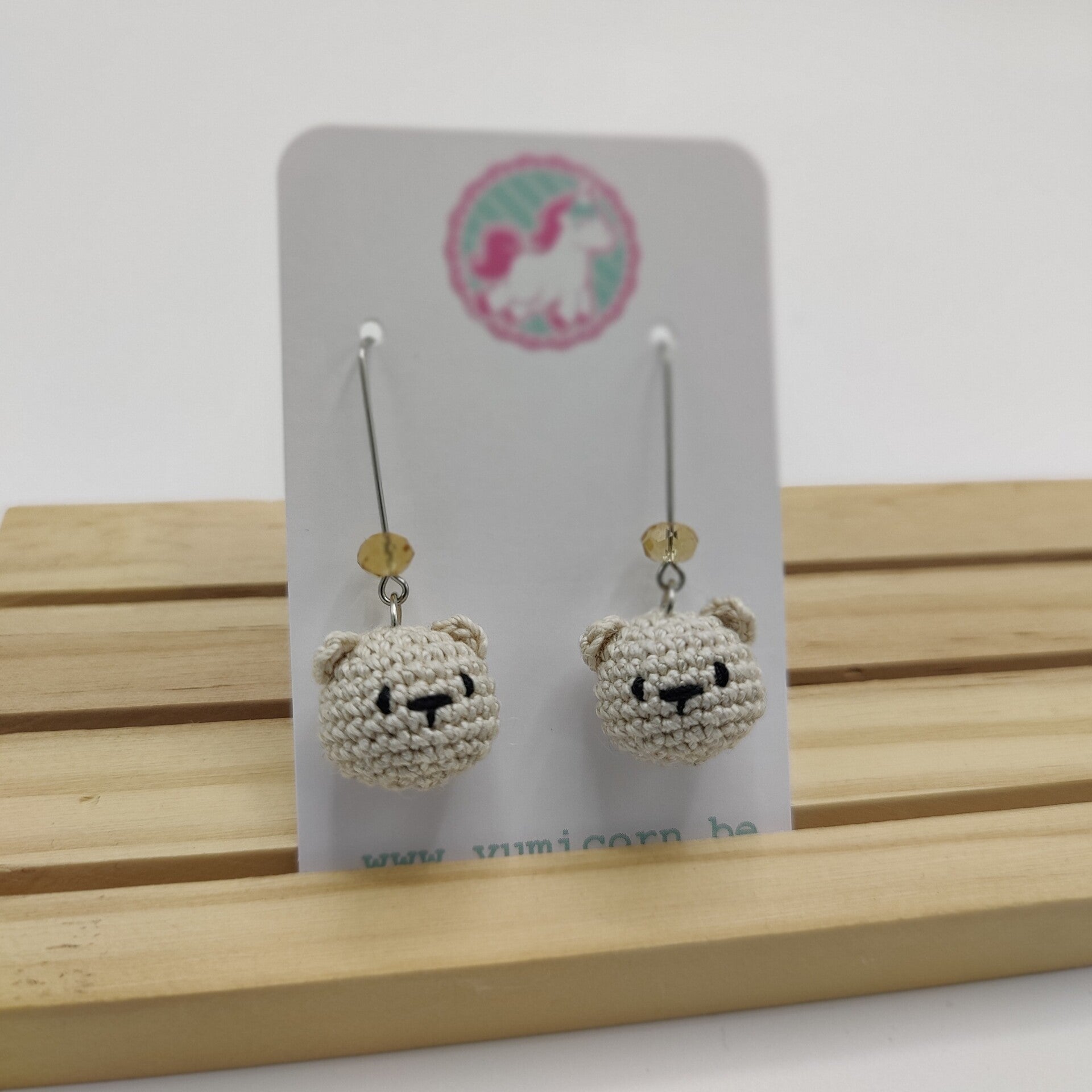 Magnifiques boucles d'oreilles en forme d'ours. Ils ont été soigneusement crocheté à la main avec du fil en coton.