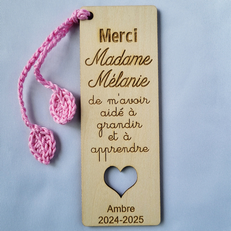 - d'un marque-page en bois créé par Doux Trio